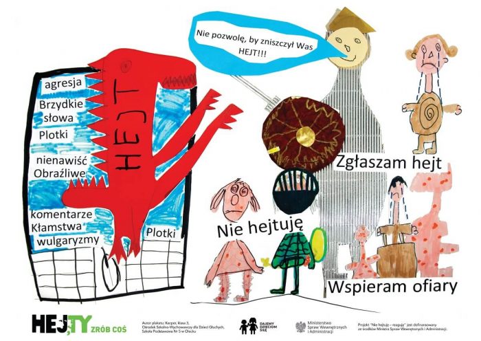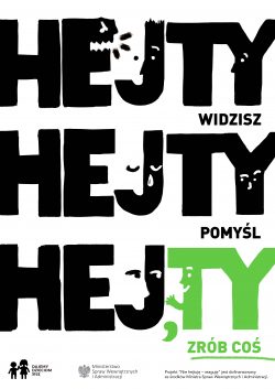 Hasła kampanii / kluczowe przekazy: Nie hejtuję – reaguję; HEJTY widzisz! HEJ, Ty pomyśl! HEJ, Ty zrób coś!
